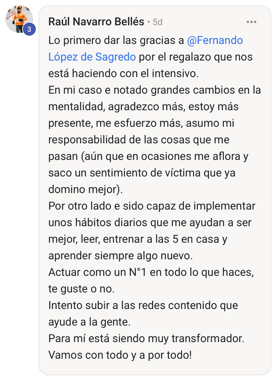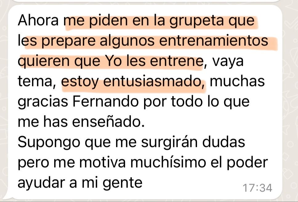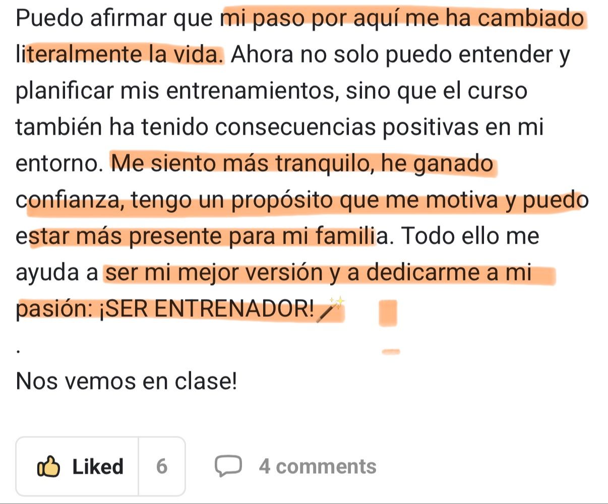"Para los futuros alumnos, os animo muchísimo a invertir en esto, esto es la mejor inversión, en cuanto a entrenamiento, que he hecho en mi vida."